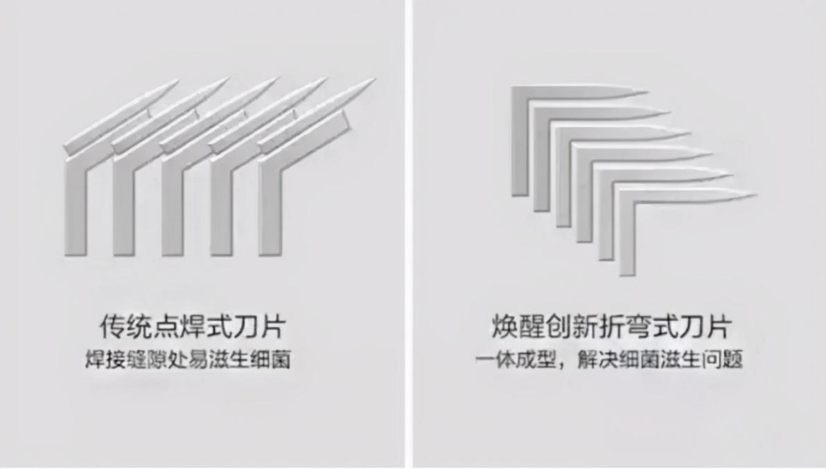 跟傳統(tǒng)點(diǎn)焊式相比,這種遞進(jìn)式一體折彎方式,不會(huì)出現(xiàn)焊接縫隙,解決了焊點(diǎn)脫落后刀片形成凸起使用時(shí)易刮傷面部的問(wèn)題,也規(guī)避了焊點(diǎn)氧化生銹易滋生細(xì)菌的問(wèn)題,使用起來(lái)更放心。